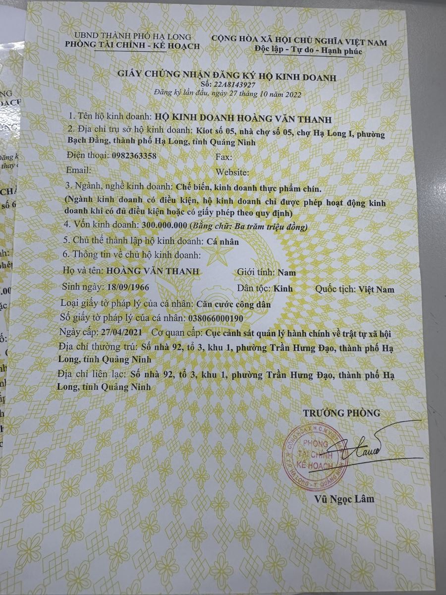HỘ KINH DOANH HOÀNG VĂN THANH