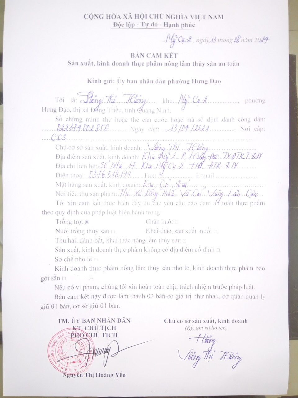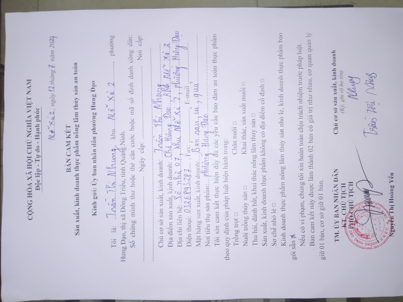 ĐC: Số nhà 07, khu Mễ Xá 2, phường Hưng Đạo, thị xã Đông Triều, tỉnh Quảng Ninh