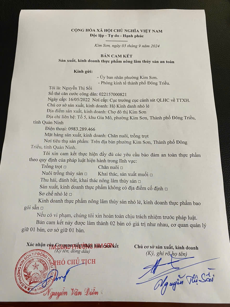 ĐC: tổ 5 khu Gia Mô, Phường Kim Sơn, Thành phố Đông Triều, tỉnh Quảng Ninh