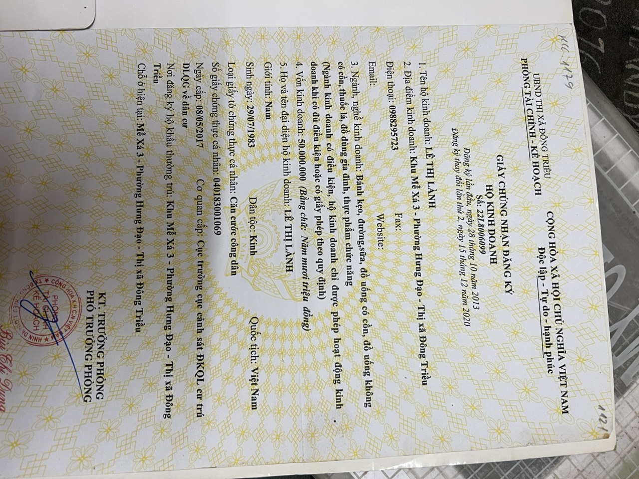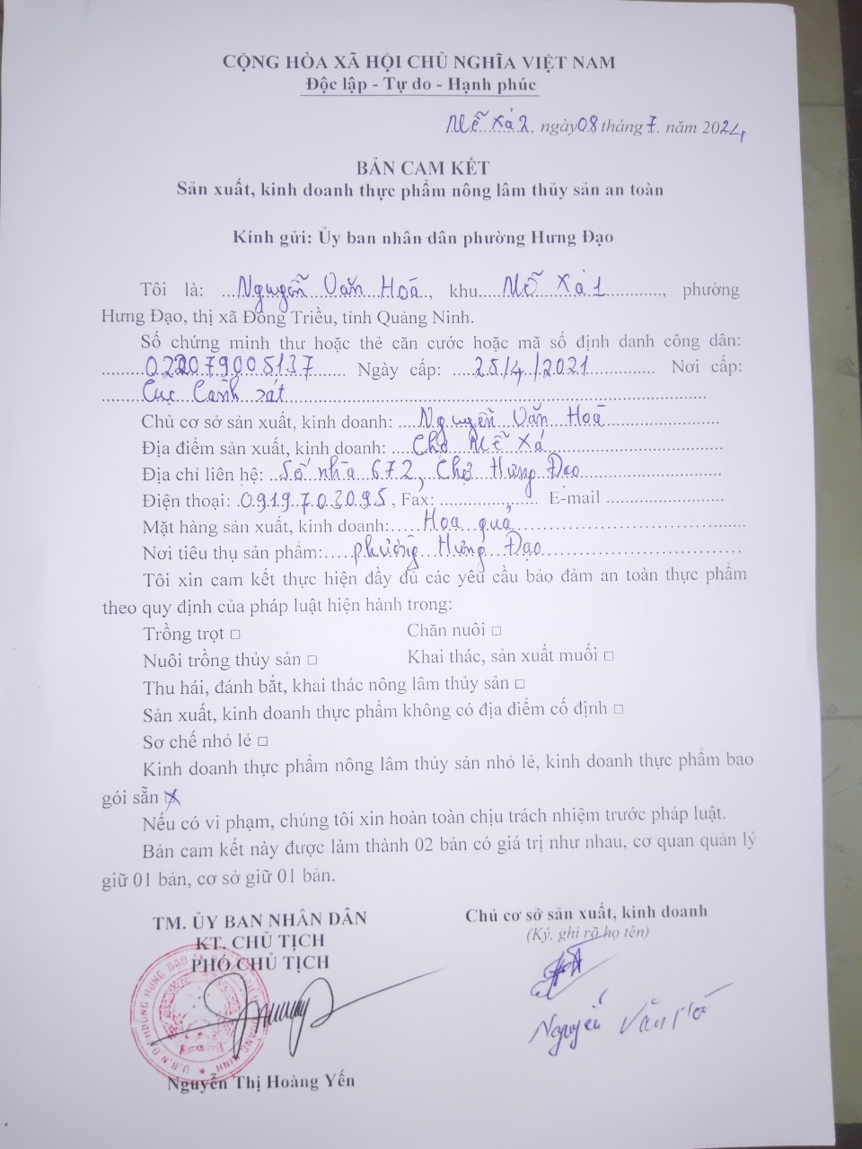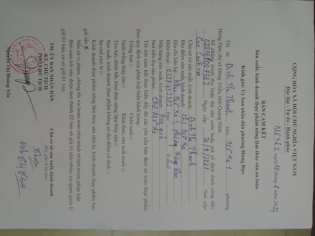 ĐC: Số nhà 672, Chợ Hưng Đạo - Phường Hưng Đạo - Thị xã Đông Triều - tỉnh Quảng Ninh