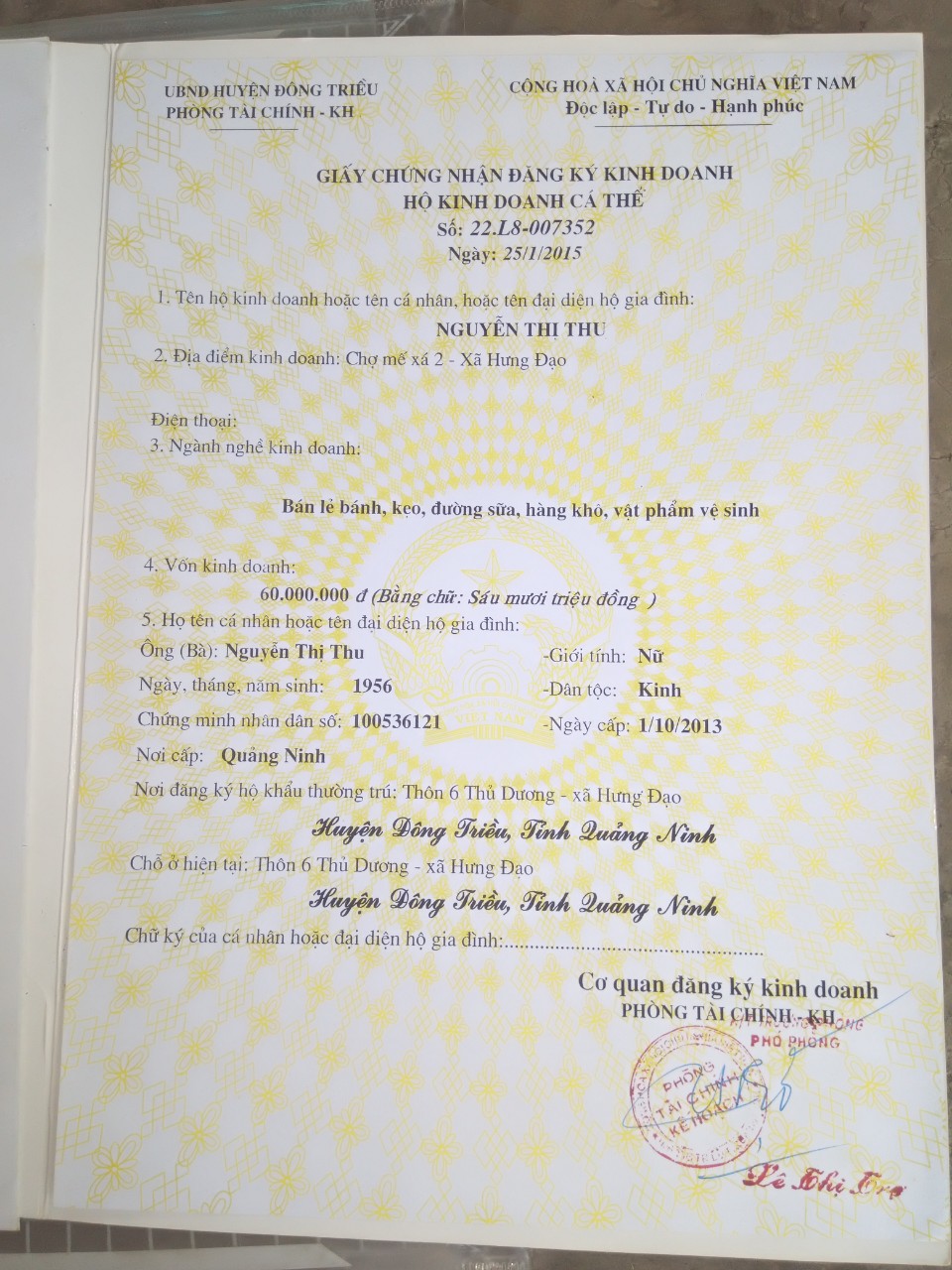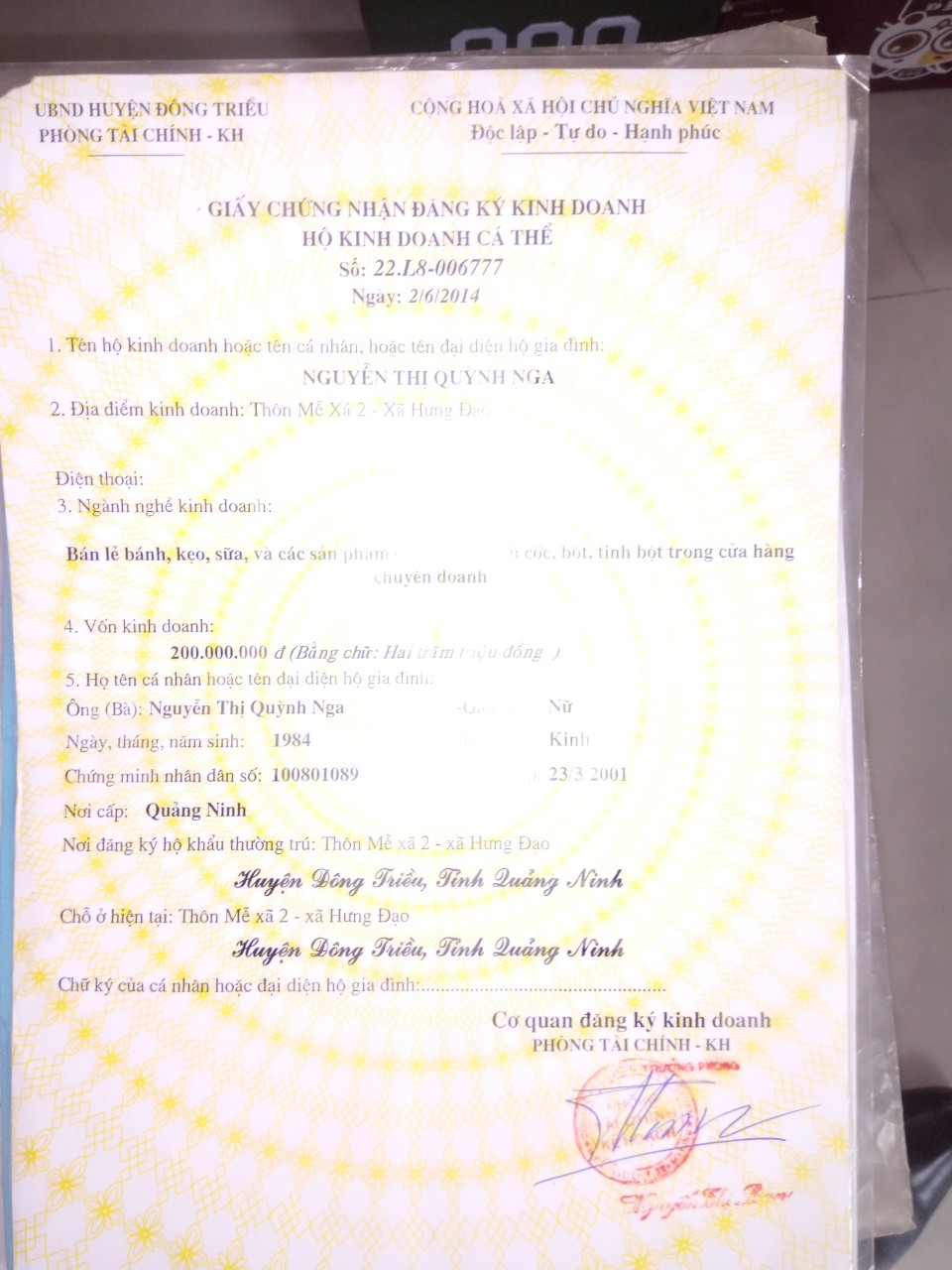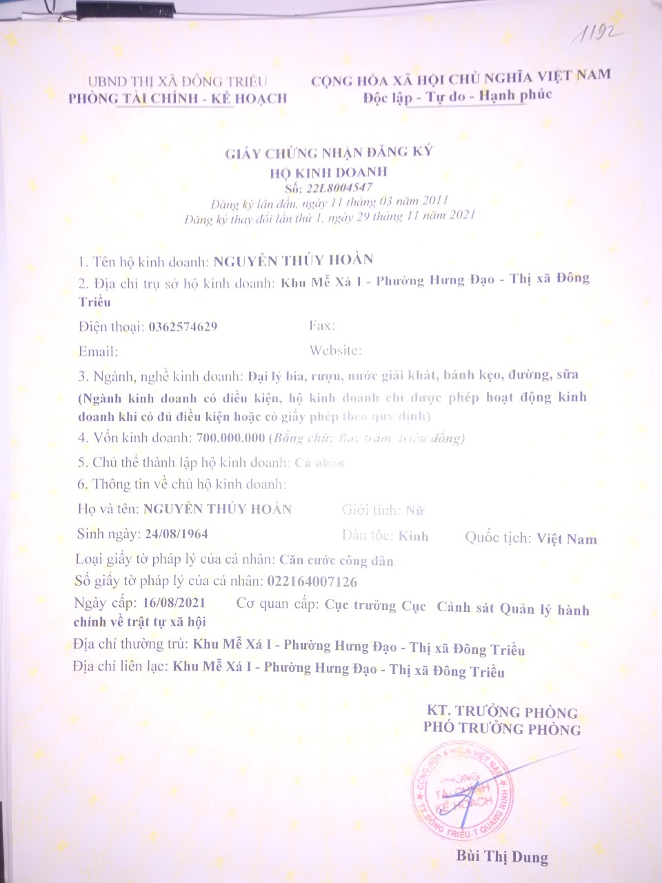 ĐC: Số nhà 08, tổ 69D, Khu 6, phường Cao Xanh, thành phố Hạ Long, Quảng Ninh