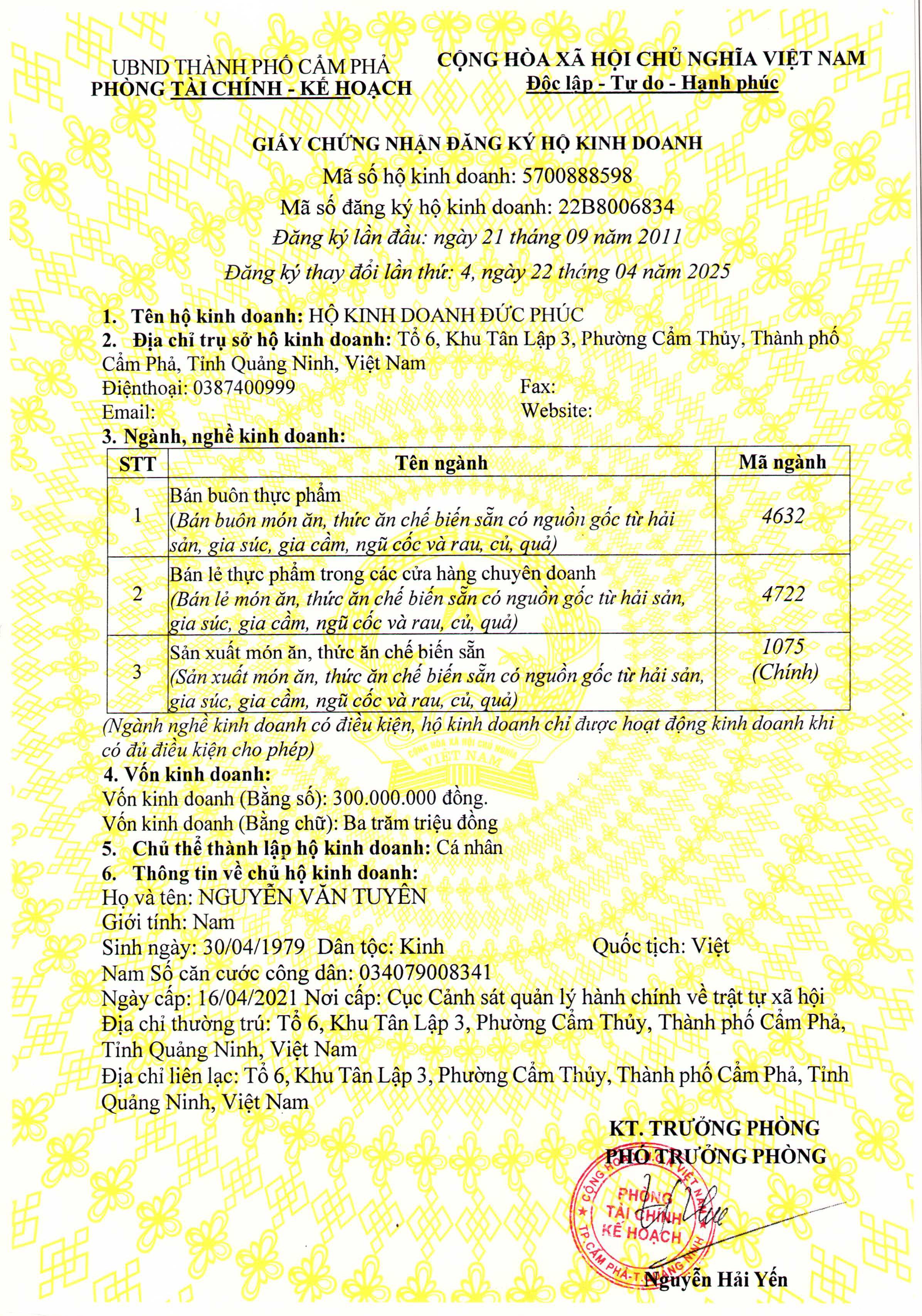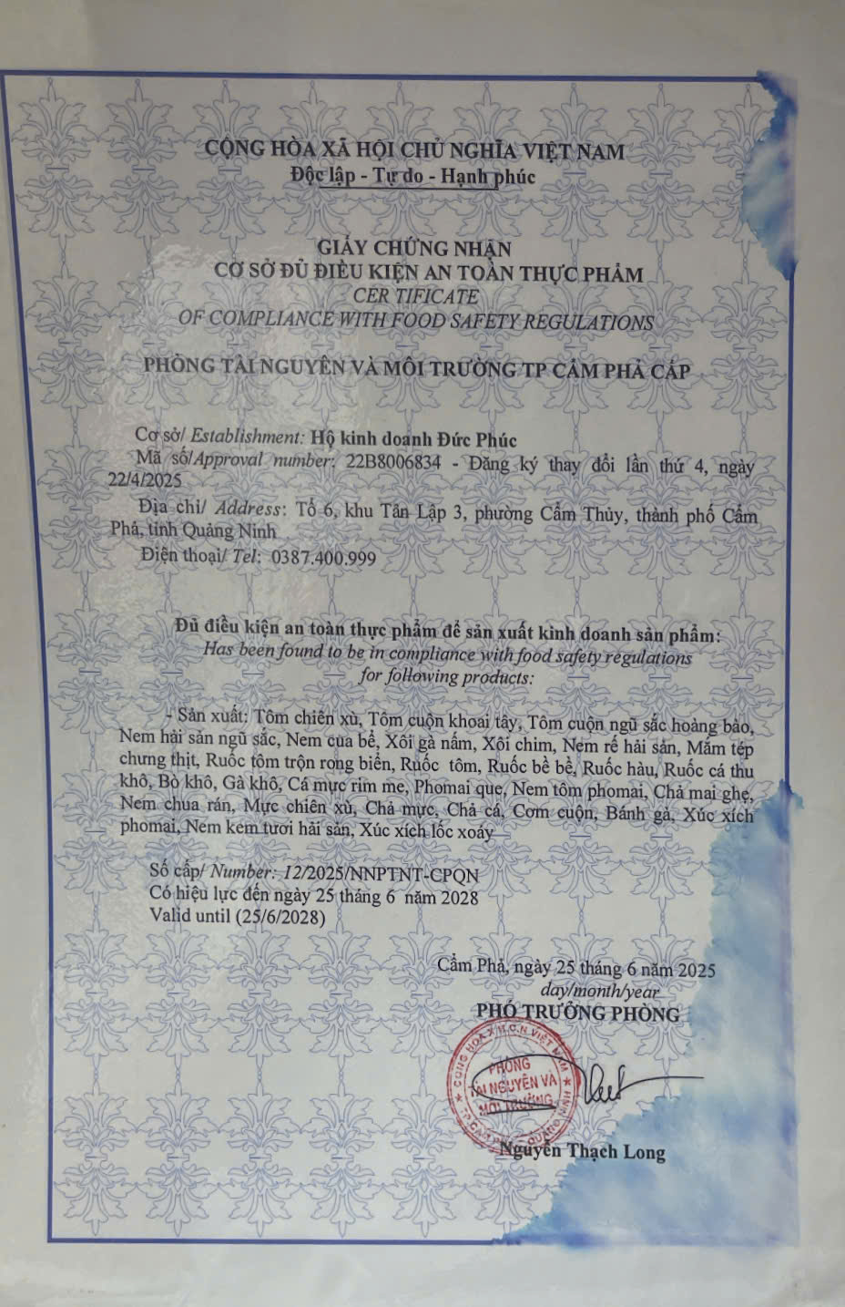 Tên đơn vị/nhà sản xuất: Hộ kinh doanh Đức Phúc
